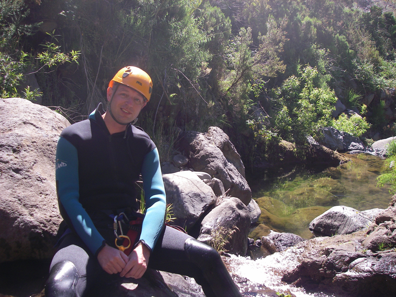 ´s Ochtends reden we richting Ribeira Grande. Vanaf hier namen we een kleine weg naar het dorpje Caldeiras met een heetwaterbron. Hier vlakbij was ook de canyon die we vandaag zouden bedwingen. Na eerst de wetsuits en veiligheidsmaterialen aangedaan te hebben, kregen we nog een korte instructie voordat we het water in gingen.