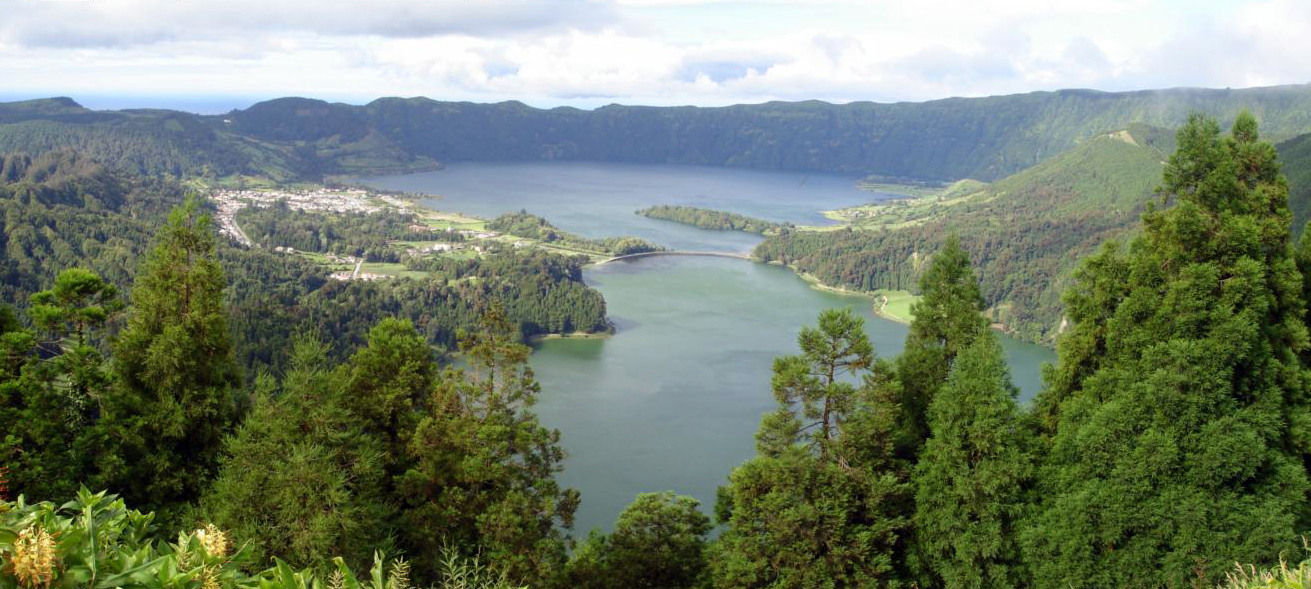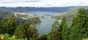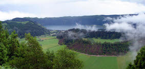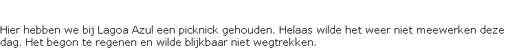 We zijn weer naar boven gereden en via een smalle bergrand hadden we bij vlagen een schitterend uitzicht in de krater of over de oceaan. Het koninklijk uitzichtpunt Vista do Rei was helaas in diepe mist gehuld. We zijn via een andere hoofdweg weer verder gereden naar Lagoas Empadades. Deze twee meren zijn voor iedereen toegankelijk, maar doordat bij de