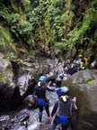 Dag 4: Canyoningen door een smalle kloof. Klauteren door het water over rotsen, glijden, springen en abseilen langs watervallen. Vandaag gaat Peggy het voor het eerst
