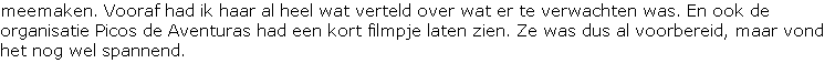 hadden we ook drie abseilpunten langs een waterval. Deze waren 5, 10 en 7 meter hoog, met gladde rotsen en meegesleepte boomstammen in de buurt. Bij de tweede abseil was het ook mogelijk om je vanaf halverwege het water in te laten vallen. Maar ook verderop hadden we een enkel punt waar we vanaf konden springen. Peggy vond het soms wat spannend, maar bleef kalm en genoot van de tocht. Het mooiste is haar dit stukje te laten vertellen, maar ik ben erg trots op mijn vriendin...