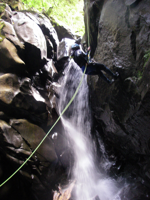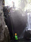 het tweede (het hoogste) en het derde abseilpunt. Dit vond ik het meest spannende omdat je hier om moest draaien op een klein stuk rots op ca. 7mtr hoogte.