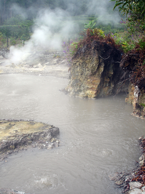 Later kwamen we erachter dat de verkopers hier de maiskolven in kookten, die dan verkocht werden. Verder was er een nette route langs de diverse borrelende bronnen gelegd, waar we alles mooi konden bekijken.