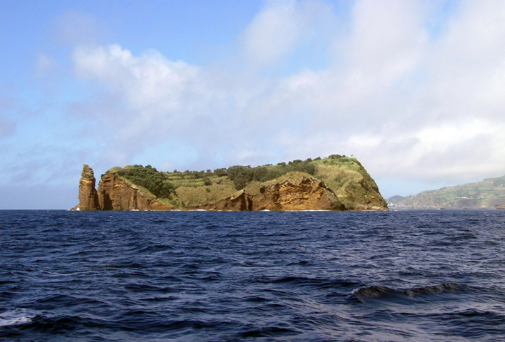 Na de lunch hebben we een klein stukje gevaren naar Ilheu da Vila, een klein eilandje voor het dorp. Ooit ontstaan als een vulkaan tot de zee een bres heeft geslagen in de kraterwand. Binnen de krater is hierdoor een rustig meertje ontstaan waar we kunnen zwemmen, terwijl nog geen vijf meter verder de golven beukten op de kraterwand.