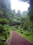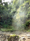 Via een netjes aangelegd pad liepen we tussen tropische varens en langs een kabbelend beekje. Dit beekje werd gevoed door een klein meertje met een waterval. Het water wordt door de geothermische bron opgewarmd, waardoor het een lekkere temperatuur heeft om te