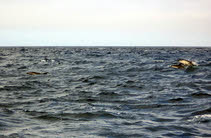 Als eerste zijn we op zoek gegaan naar de dieren van de zee. We voeren in een fiberglas boot, welke gelijkenis had met een zodiak. Door de lage ligging konden we met veel vaart over de golven kieven. Maar aangezien we tegenwind hadden, waren er dus veel