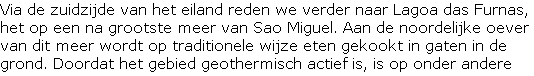We zijn doorgereden naar het nabijgelegen plaatsje Furnas. Ook hier hebben we diverse heetwaterbronnen bekeken. Bij een ervan lagen diverse