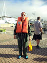 zuidkust, maar ook de bijbehorende oceaan. Vandaag staat er een boottocht gepland. Het inschepen was net als bij de andere activiteiten in Ponta Delgada. Hier kregen we een reddingsvest en regenkleding. Niet vanwege de regenbuien die hier af en toe zijn, maar meer vanwege het opspattende water van de ietwat ruwe zee.