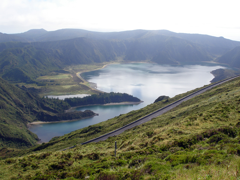 Eigenlijk reden we de route langs Lagoa do Fogo in tegengestelde richting, maar hierdoor hadden we toch weer hele andere uitzichten onderweg. Tevens hing