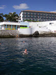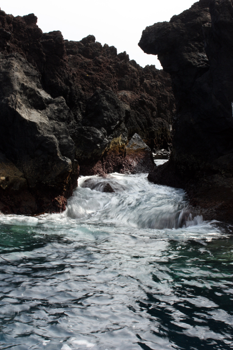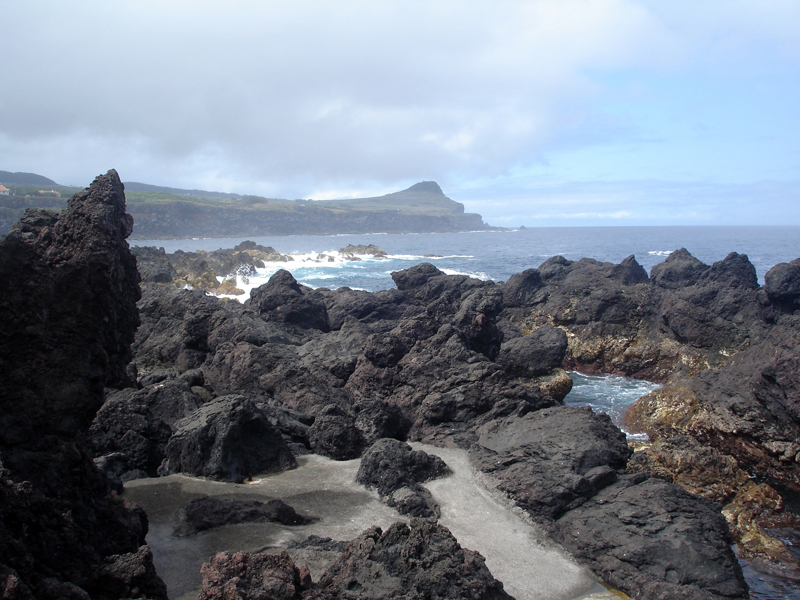 mooie kustlijn van lavarotsen, waar diverse zwempoeltjes zijn aangelegd. Dit was erg mooi om te zien. De golven beukten op de kust, maar de achterliggende poeltjes kregen maar een enkele golf water naar binnen, waardoor het verder mooi helder bleef.