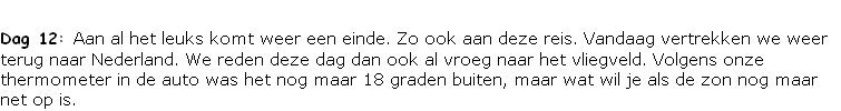 Het laatste stuk was een vlucht van vier uur naar Nederland. Doordat het