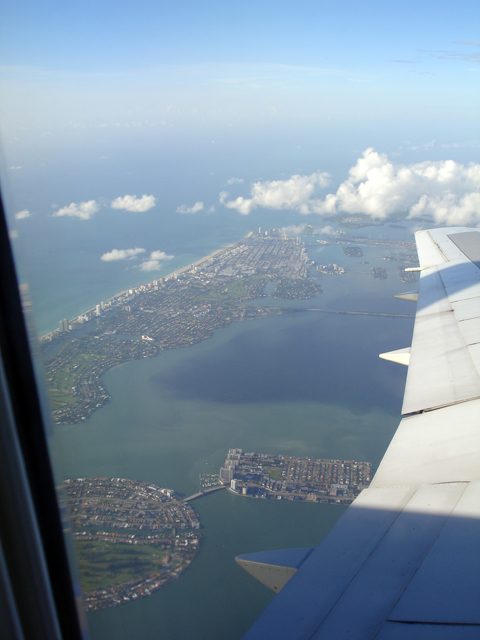 op tijd uit voor de volgende vlucht. Op het vliegveld van Miami heb ik nog even wat gegeten, voordat ik kon inchecken. De vlucht startte met een mooie bocht over Miami heen. Hierbij had ik goed zich over de verschillende wijken en het strand. Daarna vervolgde het vliegtuig zijn weg naar Californië.