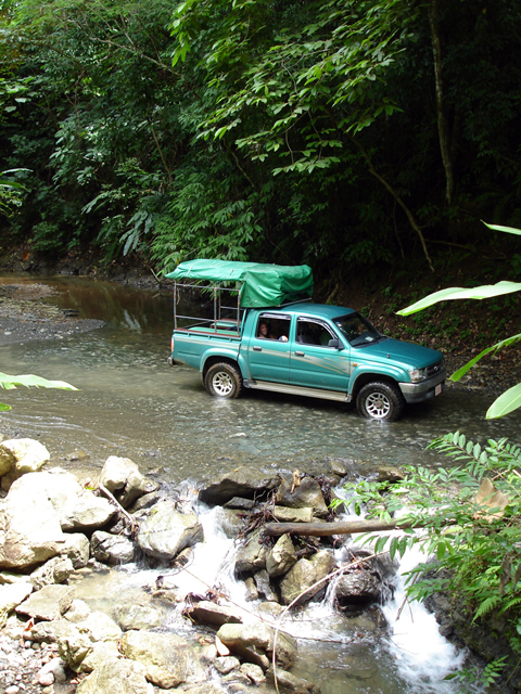 Bij Puerto Jimenez reden we nog een eindje door over een klein weggetje. Deze hield uiteindelijk op bij een rivier. Hier werden we opgewacht door