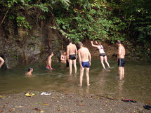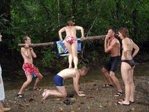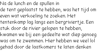 dat het water op veel meer plaatsen diep genoeg was. Na afgekoeld te zijn, hebben we ook nog met een boomstam gespeeld: verwerpen, limbo en hangen.