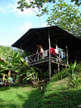 Uiteindelijk zaten we tussen de bergen waar we uitkwamen bij Lodge Rio Nuevo. Dit is ook een tentenkamp, maar dan aan de andere zijde van het nationaal park Corcovado. Toen we hier aankwamen viel voornamelijk de rust en de schitterende uitstraling op. De ingang was net voorbij een hangbrug en gebouwd tegen een bergheuvel aan. De tenten stonden op palen en de grote Rancho had een mooi uitzicht en luie hangmatten. Hier de laatste nacht doorbrengen was zeker geen straf.
