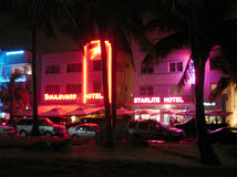 Na de verplichte paspoortcontroles kon ik doorlopen naar de bagageband en de uitgang. Een taxi werd aangehouden en heeft me naar Miami Beach gebracht, alwaar mijn hotel voor deze nacht stond. Het hotel ligt aan de oceaan in het befaamde Art Deco District. Na wat gegeten te hebben, heb ik nog even over de boulevard gelopen en genoten van de drukte in deze straat.
