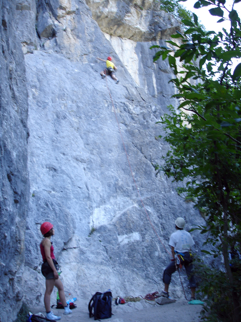 Vlakbij de camping was een mooie bergwand, waar diverse routes werden uitgelegd, van makkelijk tot zeer pittig. Een uitdaging dus. Na diverse routes geklommen te hebben, en met veel plezier kwam bijna iedereen wel boven.