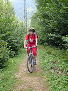 ’s Ochtends begonnen we met een mountainbiketocht. Na eerst de fietsen goed ingesteld te hebben, begonnen we met ons tochtje rond het meer. Langs de waterkant fietsten we eerst richting het dorpje. Dit stuk was nog niet te steil, zodat we mooi konden oefenen met het schakelen. Daarna reden we over een bergpaadje ophoog, met af en toe een kleine afdaling. Tot we uiteindelijk een stukje moesten afdalen, wat gelopen moest worden, zo steil, smal en glad was het.