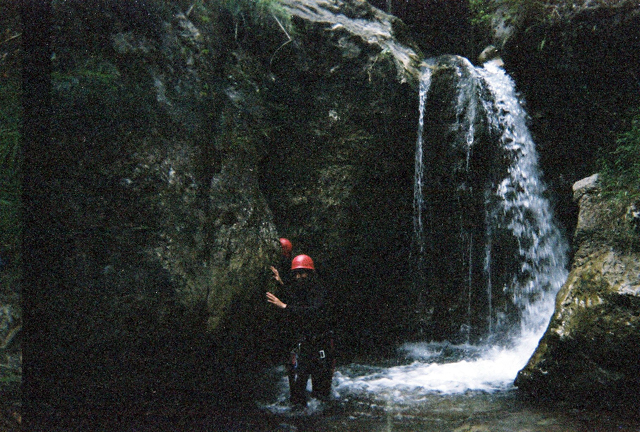 Bij het begin van de canyon werd eerst uitgelegd wat er zou gebeuren en alle materialen die je aan had gecontroleerd. Daarna begon onze tocht. Eerst bleven we nog gedeeltelijk langs het beekje lopen, maar toen de kloof begon moesten we toch echt voorzichtig door het water heen. Middels klauterpartijen en glijmomenten, kwamen we aan bij het eerste abseilpunt. Door onze begeleider werden we telkens netjes omlaag gelaten, waarbij het soms moeilijk was om niet onder de waterval terecht te komen. De rotsen