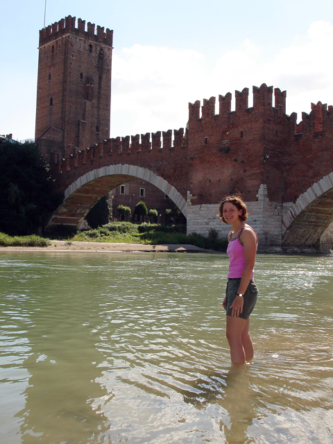 Na deze tocht zijn we op een terrasje wezen lunchen. Na de lunch zijn we langs de rivier gelopen voor wat afkoeling. Toen kwamen we ook bij de oude stadsburcht. Na het nuttigen van een overheerlijk Italiaans ijsje hebben we nog lekker in de zon geluierd op het grote plein bij de Arena. Uiteindelijk vertrokken we weer met de bus naar de camping.