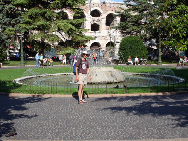 Ten opzichte van Venetië was dit ritje een stuk korter, waardoor we ook niet zo heel vroeg op hoefden. Na een rit van ongeveer anderhalf uur werden we afgezet op het centrale plein van Verona. Hier hebben we op een van de terrasjes eerst even wat gedronken.