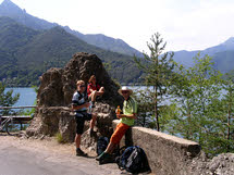 mee door gereden naar de andere zijde van het meer. Hier hebben we in een restaurant weer overheerlijk gegeten. Daarna zijn we naar de camping van Pieve di Ledro gelopen, waar een karaokeavond werd gehouden. Hier waren ook al de anderen van de mountainbikeclub aanwezig.