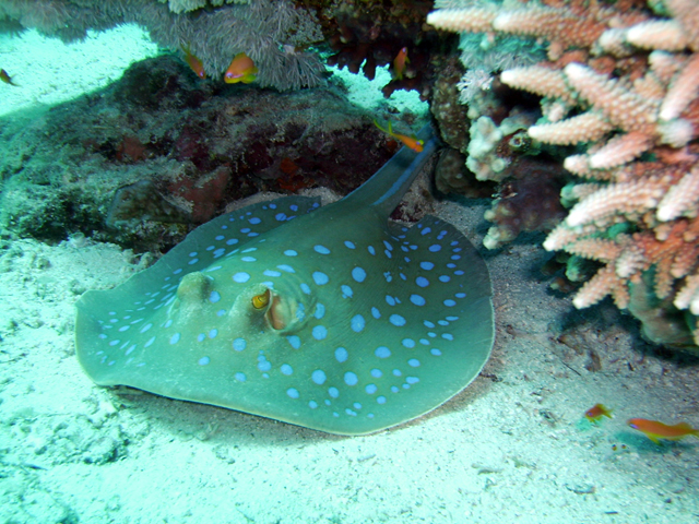 Nabij een klein eilandje hebben we onze tweede duik gemaakt. Ook hier doken we eerste een aantal meters recht omlaag langs de boot, waarna we langs het rif zwommen. Onderweg zagen we weer diverse vissen, murenen en ook enkele roggen. Onder water kon je ook een beetje de stroming van de zee voelen. Na een duik die weer veel te kort leek te duren kwamen we uiteindelijk weer boven. Dankzij een gehuurde camera heb ik erg leuke