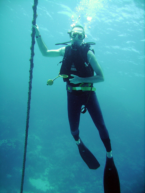 Onze eerste duik was bij een rif welke zich vlak onder het water bevond. Omstebeurt zijn we met een divemaster onder water gegaan. Zoals elke keer is