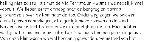 uitzicht en een beetje in de luwte, zaten we heerlijk in de zon.