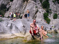 camping af. Maar eenmaal aangekomen bleek de klimwand vlak naast een meertje bij een kloof te zijn. We waren hier nog vroeg, dus was het nog lekker rustig.