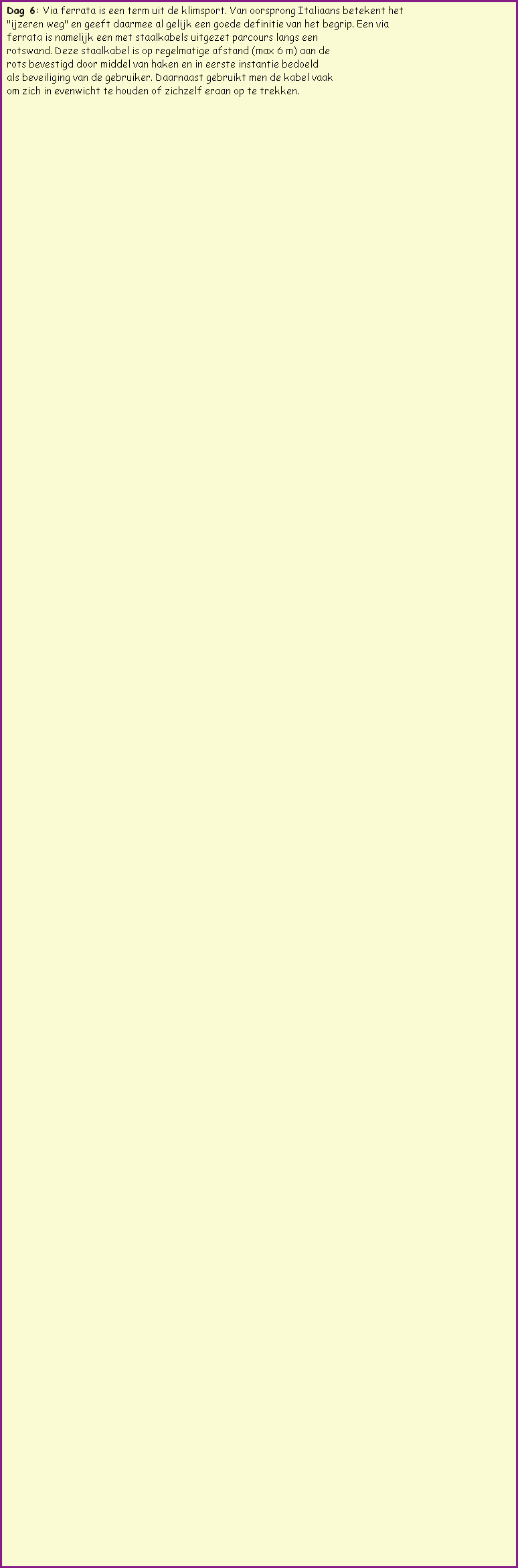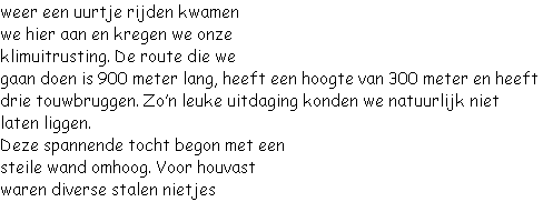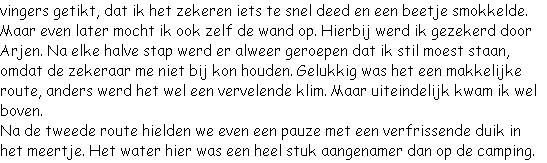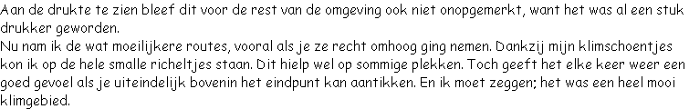 Dag 7: staat een dagje klimmen op het programma. Dit is iets waar ik elke keer wel naar uit kijk. Het is toch elke keer een uitdaging om boven te komen. Onze begeleider Daan vindt de plaats waar we gaan klimmen het mooiste plekje wat er is. Aangezien ik al op veel plaatsen ben geweest ben ik zeer benieuwd.