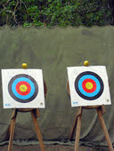 Nu merkte ik wel dat ik toch een handicap heb met mijn ogen. Omdat ik mijn linkeroog niet afzonderlijk kan sluiten moest ik met links richten, waardoor ik in het begin een afwijking naar rechts had. Door dit te compenseren met het richten gingen mijn pijlen toch de juiste richting