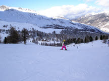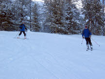 Ochtends was het redelijk bewolkt en stond er een straf windje. Hierdoor zagen we boven vrij weinig van de skiroute. Maar voorzichtig aan maakten we de eerste bochtjes omlaag. Het werd al snel duidelijk dat we zonder skibril weinig konden zien. Bij de lagere pistes was de wind en sneeuw gelukkig minder fel, maar de sneeuw op de piste was helaas van mindere kwaliteit. Maar ondanks dat lieten we ons niet van de berg jagen.