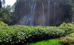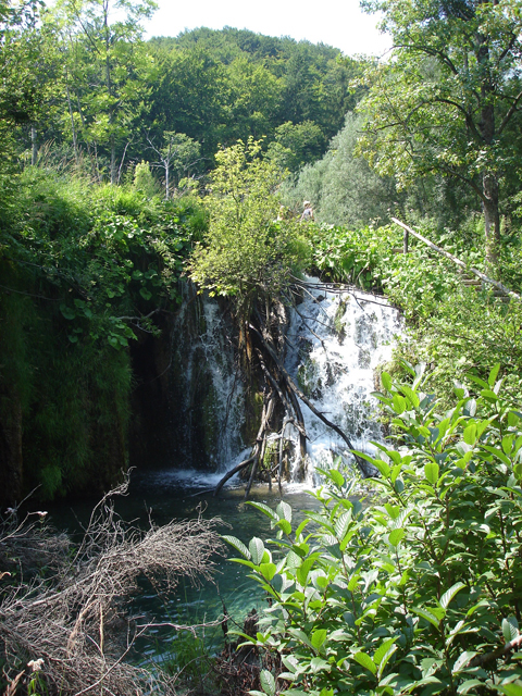 In het park begonnen we bij de Donja Jezera; de onderste meren. Hier liepen we eerste naar de hoogste waterval. Met een verval van 76 meter komt het water van een naastgelegen berg omlaag. Via een aangelegd houten pad liepen we daarna langs de diverse meren. Hier hadden we