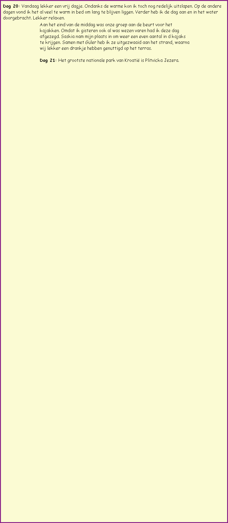 Dag 22: Bijna iedereen had een try-dive gekozen. Een oefenduik om te zien wat duiken precies voorstelt. Bij de leiding had ik al aangegeven dat ik al vaker had gedoken en daar hadden ze rekening mee gehouden. Voor mij en een paar anderen was een aparte duik geregeld bij een rif. Alleen zal dit morgen pas plaatsvinden. Dus