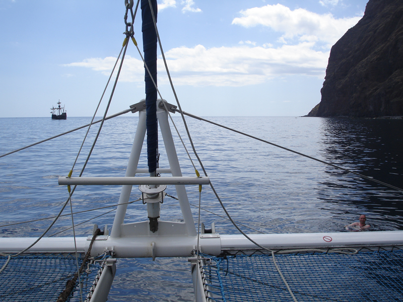 In de middag hadden we al onze eerste excursie. Een rondvaart met een catamaran. Het was nog een best luxe boot, waarbij we vanaf alle zijden een mooi uitzicht hadden. Met onder het grootzeil een soort tent, waardoor we niet in het directe zonlicht hoefden te zitten.
