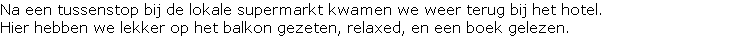 Eind van de ochtend hebben we een lunch genuttigd op het balkon. We zijn daarna nog een rondje gaan lopen over de boulevard en door het dorpje.