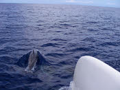 Vanaf de haven van Funchal voeren we eerst de open oceaan op. Hier gingen we op zoek naar dolfijnen en walvissen. Hoe ze het deden weten we niet, maar in no-time waren we al bij de dolfijnen. De gestreepte dolfijnen