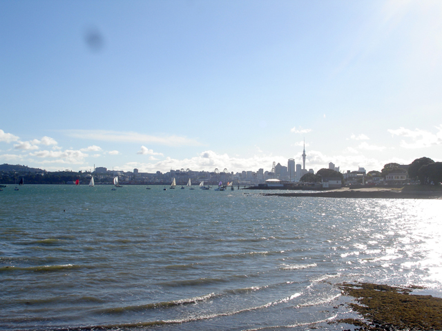 strand gelopen naar North Head, een van de oude vulkanen. Ook van hieruit hadden we mooie uitzichten. En doordat diverse zeilboten vanaf Auckland wegvoeren, kregen we een mooi idee van de bijnaam van deze stad: