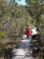 die langs een brede rivier gaat. Soms liep je vlak langs het water, terwijl je na een bocht in de stilte van het bos liep. Halverwege kwamen we ook nog via een vlonderpad door een stukje mangrove. Doordat het eb was, zag de bodem er erg modderig uit. Na