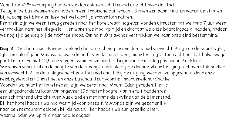 Dag 4: Vandaag hadden we tijd om de stad te verkennen. ’s Ochtends zijn we naar de opstapplaats gelopen van de Hop-on-hop-off bus. Hiermee kwamen we ook langs de verschillende bezienswaardigheden van de stad. Aangekomen bij het Auckland War Memorial Museum ging de groep uit elkaar. Enkelen gingen het museum bekijken. Ik ben met Isabel en Claudia op een andere bus overgestapt die het zuidelijke deel van de stad liet zien.