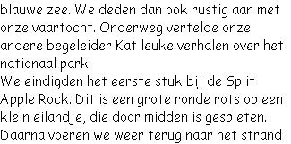 manier konden we snel naar de anderen toe varen als er onverhoopt wat zou gebeuren. En het was erg gezellig. De kust voor het nationaal park was echt heel mooi. De goudgele stranden stonden in mooi contrast met de groene bossen, de grijs-zwarte rotsen en de