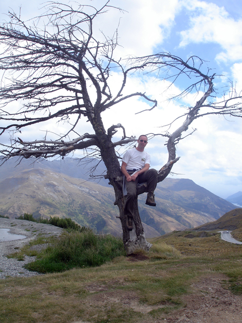 zien en we hadden daardoor een mooi uitzicht over Lake Wanaka en Lake Hawae. Bij Wanaka zijn we van de vaste route afgeweken en via Cardrona Highway naar Queenstown gereden. Deze weg liep hoog over de bergen heen. Bij een uitzichtspunt hadden we dan ook een mooi uitzicht over Lake Wakatipu en Queenstowen in de verte.