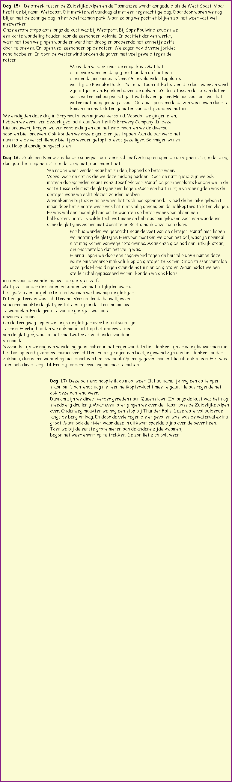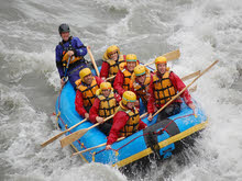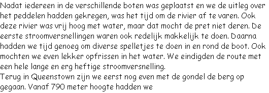 opgetakeld. Natuurlijk konden we na de sprong deze direct terug zien op film en video. De volgende actie was een rafttocht. Vanwege het hoge water was het helaas niet mogelijk om over de Shotover rivier te varen. Maar als alternatief kon ik wel varen over de Kawarau rivier. Samen met Elly ging ik deze uitdaging aan.