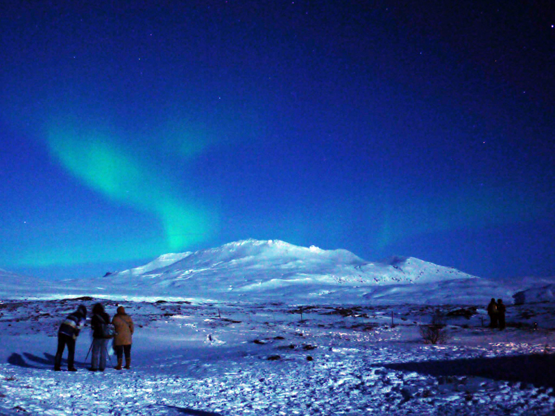 In de avond begon de bewolking weg te trekken en ondanks dat we beiden erg moe waren hebben we toch een herkansing genomen op het noorderlicht. Na een powernap zijn we weer de bus in gestapt. Dit keer ging de bus richting Thingveller. En dit keer hadden we geluk. Vlak voordat we bij de stopplaats kwamen, begon het noorderlicht. Diverse witte pluimen met een