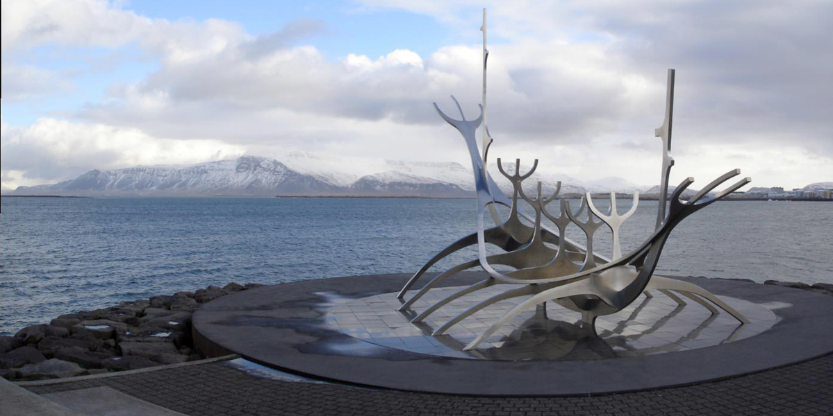 weer de kerk uit en zijn via de haven naar het hotel gelopen. Hier hebben we bij de haven nog even gekeken bij Sólfar (Sun Voyager), een beeld van een vikingsschip.