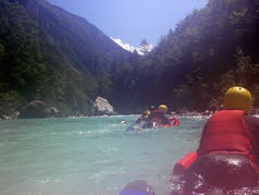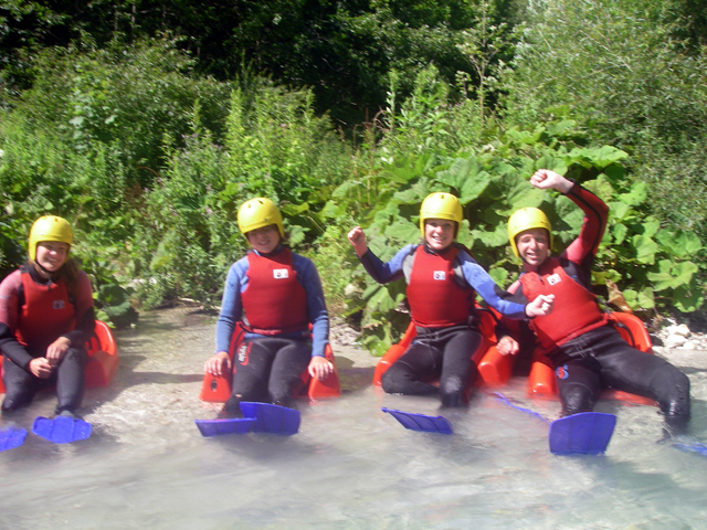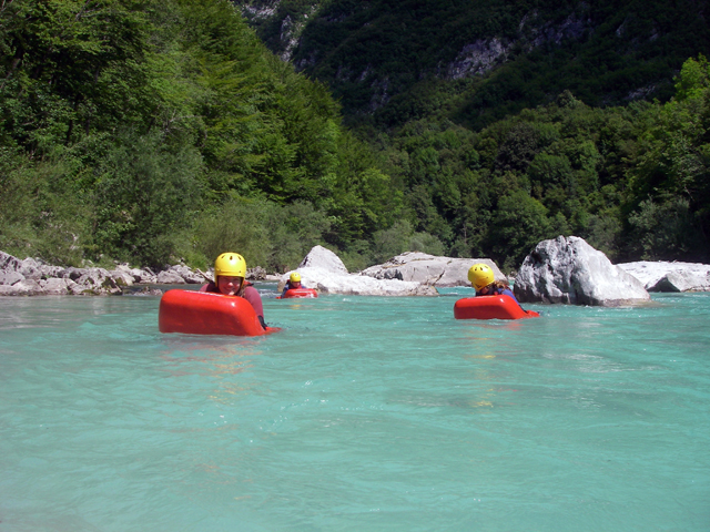 Dag 8: Na al de hele week gevaren te hebben over de Soca, was het nu tijd om er echt in te gaan zwemmen, met hydrospeed. Met een bodyboard zwem je de rivier af.