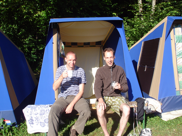 zelfs de weg. Maar na een paar uurtjes kwamen we weer uitgeput aan bij de camping.