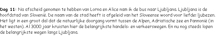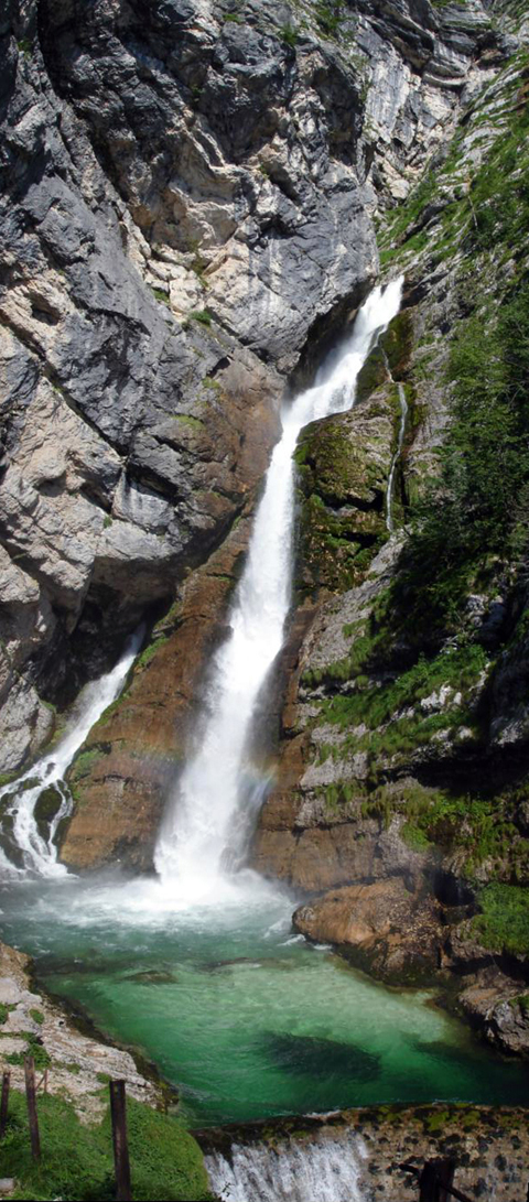 Dag 10: Omdat ik morgen alweer verder trek, wilde ik optimaal gebruik maken van deze dag. Hierdoor zat ik ’s ochtends al vroeg in de bus richting Bohinj. Als eerste heb ik de oorsprong opgezocht van de Bohinjsko Jezero; het meer van Bohinj. Dit is de waterval Slap Savica. Vanaf de bushalte was het nog maar drie kilometer lopen naar deze waterval. De wandeling viel op zich wel mee. Maar aan het eind waren er wel veel traptreden, die het vermoeiend maken. De waterval valt vanuit een rots 60 meter in het turkooizen bassin.