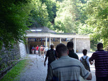 andere kleur te hebben. Via de gang der briljanten, die zijn naam te danken heeft aan de enorme witkristallen stalagmiet, kwamen we uit bij de “concertzaal”. In deze enorme zaal wordt een paar keer per jaar een concert gegeven. De echo hier is zo sterk dat deze bijna 6 seconden duurt. Met het treintje reden we daarna weer terug naar de ingang, waar de Pivka de grot betreedt.
