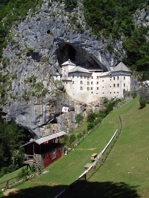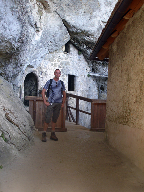 Daar had ik dus geen zin in. Toen ik voor het station stond stopte toevallig de pendelbus naar Predjama. Dit leek mij ook wel een leuk alternatief. En na een half uurtje rijden was ik hier aangekomen. Het bijzondere hier was Predjamski Grad, een kasteel dat tegen een 120 meter hoge rotswand is aangebouwd. Achter deze burcht bevindt zich ook een heel grottenstelsel; de Predjama.
